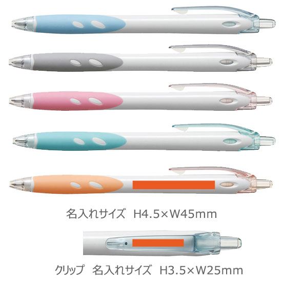 人気のレックスグリップボールペンの名入れが目立つ白軸です。クリップにはロゴマークのないノーマークタイプとなっております。