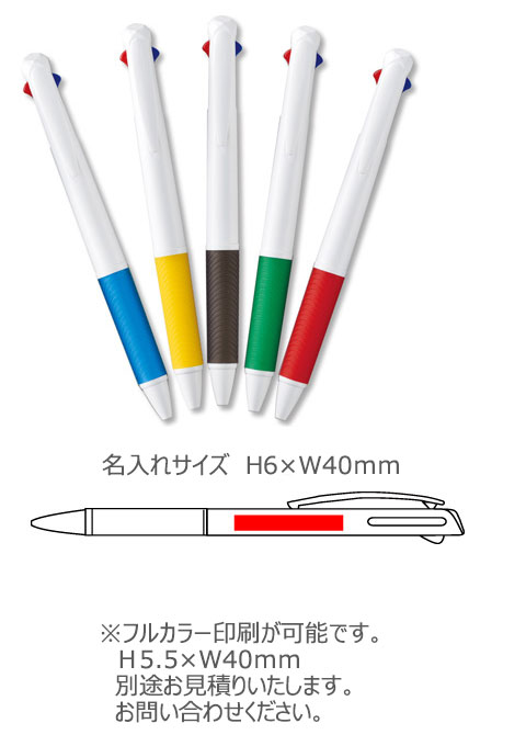 黒、赤、青インク搭載の3色ボールペン。シンプルなデザインなので年齢や男女を問わずにお使いいただけるボールペンです。