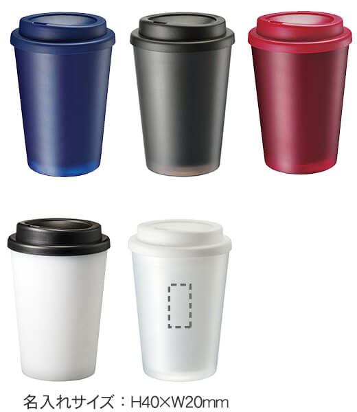 カフェのテイクアウトカップのようなデザインのタンブラーです。ボディはフロスト調でおしゃれです。