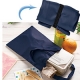 お弁当がフラットに収まる底の広いエコバッグです。買ったお弁当が斜めにかたむく事なく持ち運びができ、ストレスから解放されます。