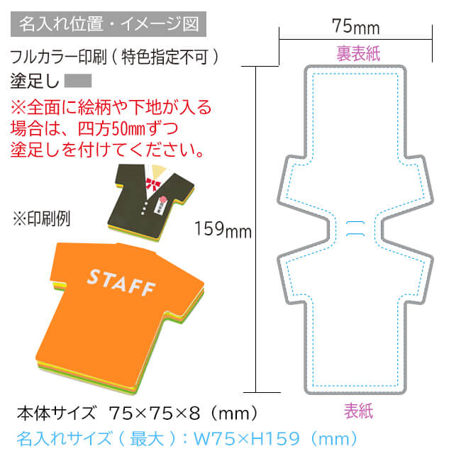 Tシャツの形をしたユニークな付箋。表紙にオリジナル印刷ができます。