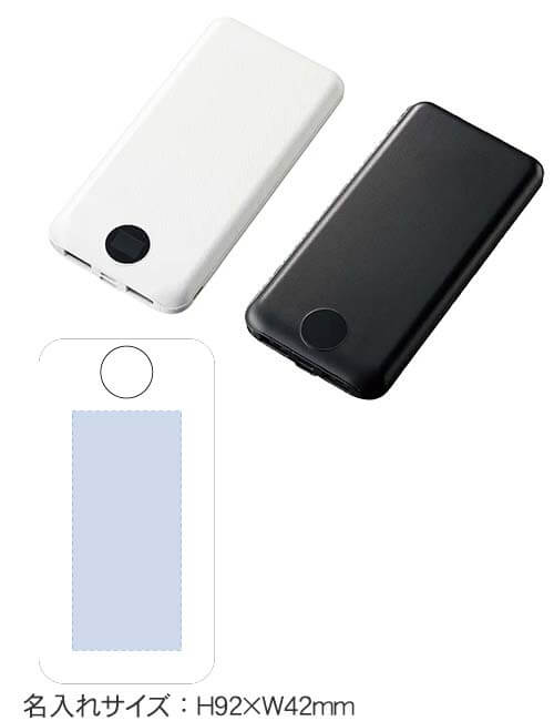 USBポート2口付きで最大2台同時充電が可能です。カラーはブラック、ホワイトから選択が可能です。最大出力2.1A、バッテリー容量10000mAh。取説付き。Type-Cケーブル付き。モバイルチャージャーは記念品や粗品として配ると喜ばれます。卒業記念品、お店のオープニング記念品、創立記念品、展示会の来場者記念品にぜひご活用ください。※こちらの商品はより購入しやすいロット数に調整している為、名入れの価格が高く設定されています。購入数量によっては名入れ単価は下がる場合がございます。正式見積もりのご依頼をお待ちしております。