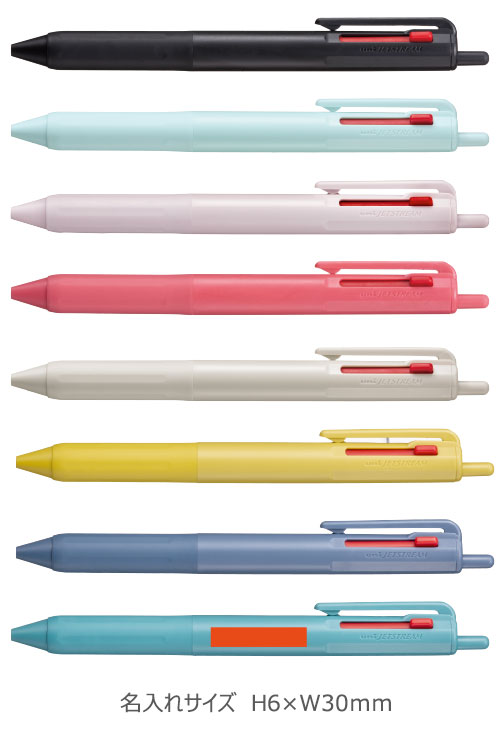 (版代は有料となります)。【名入れキャンペーンについて】※名入れキャンペーンは300本〜のご注文が対象となります。※300本以下のご注文の場合は通常価格にてのご提供となります。2色での名入れの場合は1色分、2か所名入れの場合は1か所が無料となりますので、お問い合わせください。【ジェットストリーム3色ボールペン】迷わず黒が使える3色ボールペン。黒インクをノックで繰り出せるため、直感的に黒を使えます。赤・青インクはこれまでと同じスライドノックです。通常品に比べ、黒インクを約70%増量した「長持ちリフィル」搭載しています。インク色:黒・赤・青。0.5mm。材質/先軸:PP樹脂(ラバークリップ付き)、後軸:再生樹脂、クリップ:再生樹脂・銅材。個装は有料となります。ジェットストリームなので記念品や粗品にぴったりです。学校名や会社名を名入れして卒業記念品や周年記念品として配ると喜ばれます。