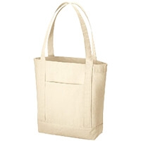 単色の生地が大人カジュアルを演出し、幅広い世代の方にお使い頂けるバッグとなっております。表面に携帯電話や小物が入るポケットがついており、A4サイズの書類を収納できるので、通勤時のサブバッグとしてもおすめです。無漂白エコマーク認定商品です。容量:約10L。12オンス。キャンバストートバッグは記念品や粗品として配ると喜ばれます。卒業記念品、周年記念品や創立記念品、展示会の来場者記念品にぜひご活用ください。