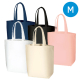 ジュートでは珍しい縦長バッグに合皮ハンドルを使用、外ハンドルの持ち手にはスタッズもついておりファッション性を出しています。大きいスケッチブックがしっかり入るサイズ感で、マチもあるので収納力も抜群です。転写印刷での名入れも可能です。別途お見積り致しますのでお問い合わせください。サイズ:持ち手/約W30×H520mm、容量:約19L。ジュートバッグは記念品や粗品として配ると喜ばれます。インテリアショップで配る記念品、お買い物記念品、、周年記念品や創立記念品、展示会の来場者記念品にぜひご活用ください。
