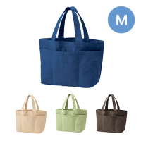 Mサイズはランチバッグとしても、またボトルや傘などもしっかり入るためお出かけバッグとしてもぴったりです。カラーはべージュ、ネイビー、オリーブ、チャコールブラックから選択が可能です。容量:約6L。生地厚:13oz。転写印刷が可能です。別途お見積もりをいたしますので、お問い合わせください。トートバッグは記念品や粗品として配ると喜ばれます。スーパーで配る記念品、お買い物記念品、創立記念品、展示会の来場者記念品にぜひご活用ください。
