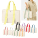 スマホが入る内ポケットや口元ホックなど、使いやすさにもこだわっています。さらに、背面にはストラップ用金具付きで、推し活グッズの携帯にも最適です。9色のバリエーションから推しカラーを選べる為、アニメ・アーティストなどのオリジナルグッズ制作にも活躍します。カラーはナイトブラック、パープル、チェリーレッド、スモークブルー、スモークピンク、ホワイト、オリーブ、ピーチオレンジ、レモンイエローの9色から選択が可能です。容量:約9L。※名入れの際は、ハンドルが上からかぶさるデザインになりますのでご注意ください。スクエアトートは記念品や粗品として配ると喜ばれます。イベントで配る記念品、周年記念品や創立記念品、展示会で配る記念品にぜひご活用ください。