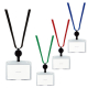 タテ名刺対応で、名刺やカードを分けて収納できる便利な2ポケット仕様。ワンタッチで着脱可能な金属フック付きで、ビジネスシーンでもスマートに使えます。見た目の上質さと実用性を重視する営業職・管理職の方、来客対応の多い方にオススメです。カラーは黒、青、緑、赤の4色から選択が可能です。安全装置、長さ調整、中紙付。本体サイズ:ひも/長さ約90cm、幅約10mm。対応サイズ:W55×H90mm。※名入れ代と版代はメーカーの意向により、定価にて記載しております。値引きの金額は正式見積にてご案内致します。吊り下げ名札は記念品や粗品として配ると喜ばれます。文具イベントで配る記念品、周年記念品や創立記念品、展示会で配る記念品にぜひご活用ください。